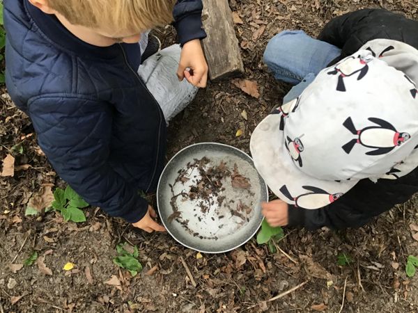 En gang om ugen har vi båldag om formiddagen, hvor børnene er med til at hente brænde til bålet, og vi hygger os omkring det. Inden vi spiser holder vi fællessamling for alle med sanglege.